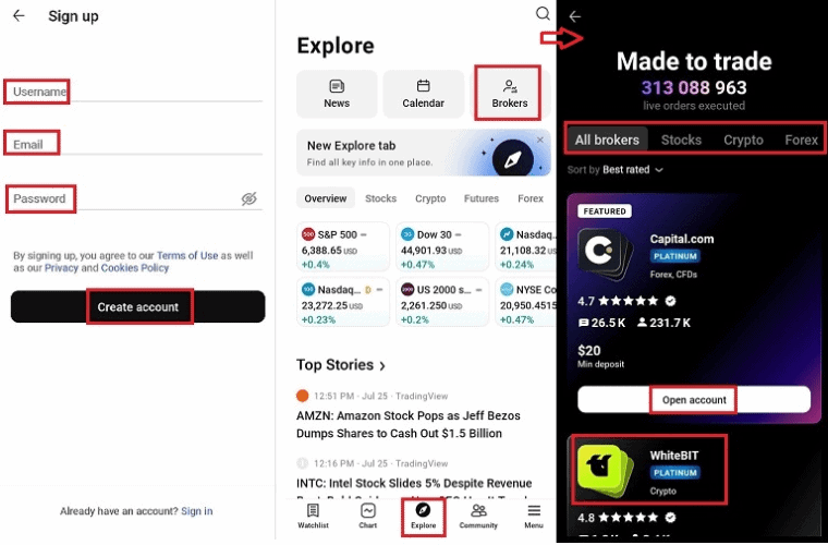 برای ساختن اکانت تو اپلیکیشن موبایل تریدینگ ویو، کافیه این چند تا کار ساده رو انجام بدی: